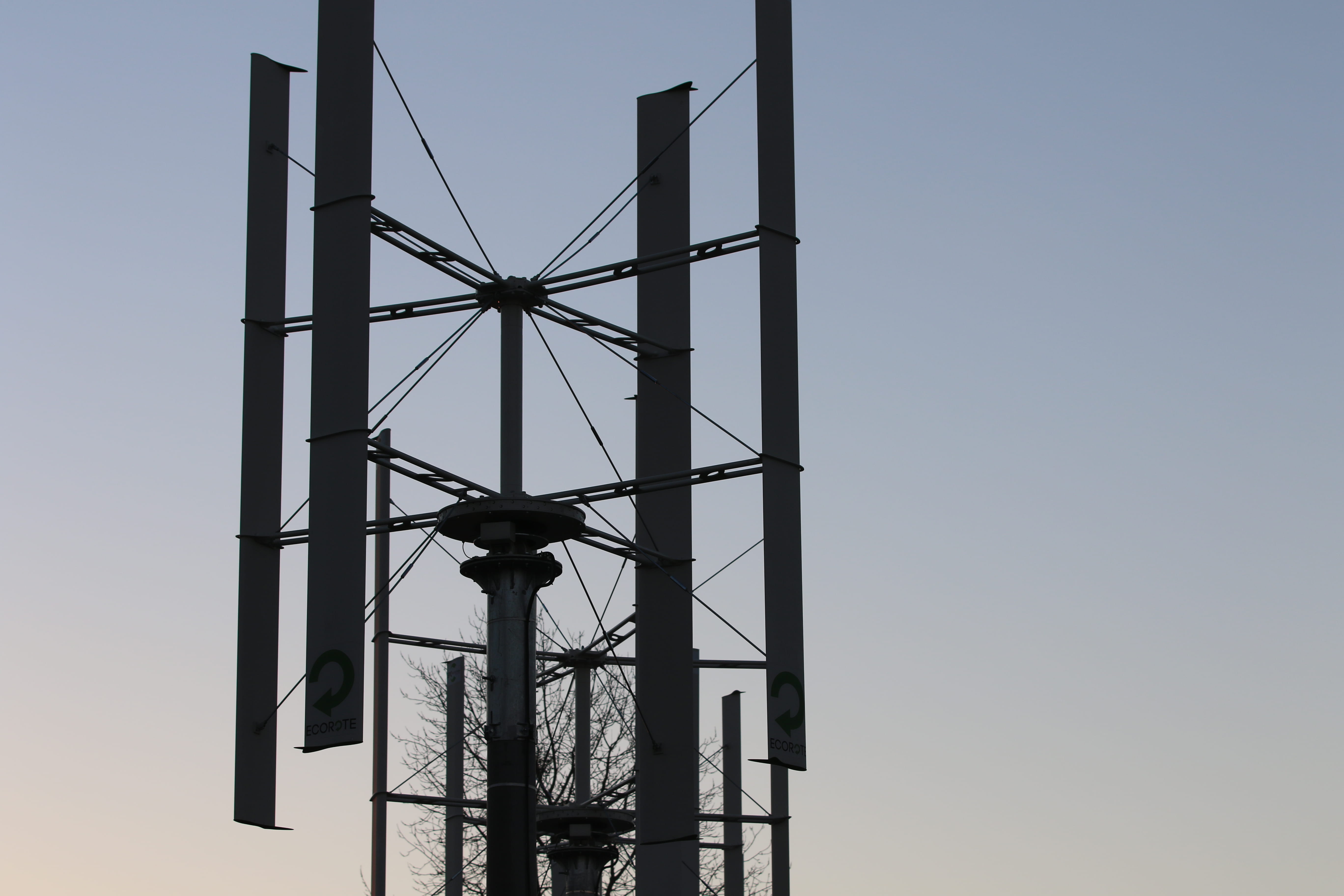 pięciu mikroturbin wiatrowych o mocy 9,8 kW każda - łącznie prawie 50 kW, które zostały zlokalizowane z dala od obecnych i planowanych zabudowań mieszkalnych. Turbiny wiatrowe o pionowej osi obrotu zastosowane w instalacji gwarantują cichą pracę i brak wibracji, co zostało potwierdzone testami;
